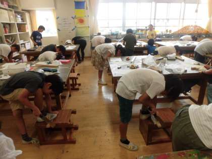 21日(金)の3・4時間目、4年4組は図画工作の時間でした。題材名「とんとん つないで」に取り組んでいました。のこぎりを手に、木材を切っていました。力の入れ具合をつかむまでが大変そうでした。