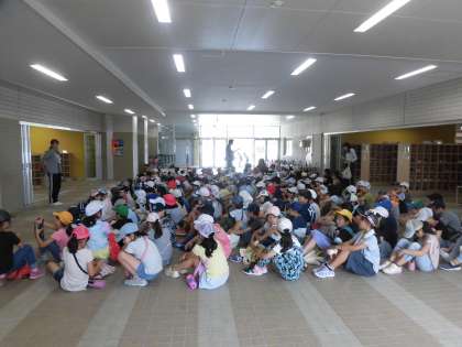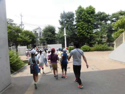 21日(金)の午後1時20分、4年生は1階ピロティに集まりました。地域にある「蘆花公園」に移動するためです。公園内の花の丘に向かいました。