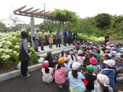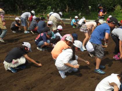 21日(金)、蘆花公園内の花の丘に到着した4年生は、地域の方々と一緒に「コスモス」の種を蒔きました。昨年度まで工事のためにできなかった活動が、4年生により復活できました。4年生は地域の一員としても活躍しました。