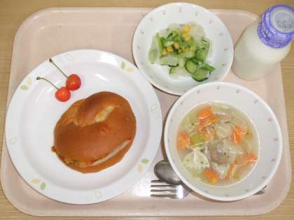 今日は、ホキを使った「チリバーガー」でした。ホキは脂肪が少なく淡白であるため、揚げ物にピッタリです。また、チリソースとの相性も抜群でした。そして、スープにはリボン型のパスタを使いました。