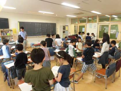 24日(月)の5時間目、2年3組は国語の時間でした。最初に新出漢字の練習をしました。今回は「答」でした。次に、「お手紙」の物語を読み進めました。がまくんの気持ちの変わったところを教科書から探して、理由も付けて発表しました。