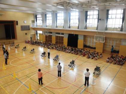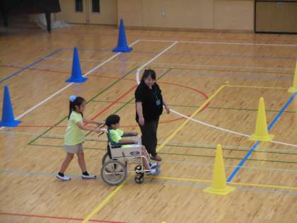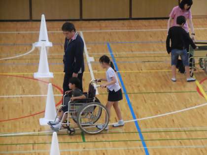 25日(火)の6時間目、3年生は総合的な学習の時間でした。今回は、体育館で「車いす体験」をしました。学校近くの特別養護老人ホームの方々に講師としてお越しいただきました。子どもたちはペアで活動し、車いすに乗る側、押す側になりました。両方の立場になったことがよい経験になりました。