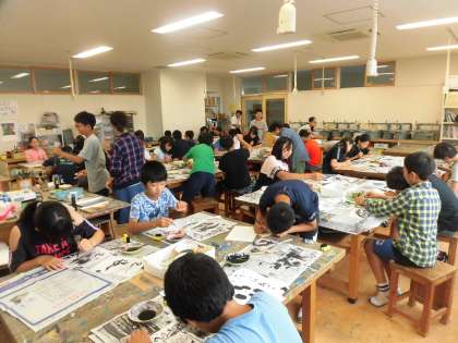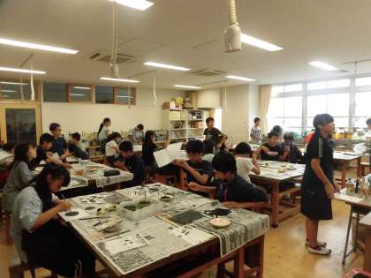 7月1日(月)の2時間目、6年2組は1時間だけの図画工作の時間でした。「墨のうた」と題して、墨の濃さを変えたり、紙の質を変えたりしながら墨の世界を楽しんでいました。