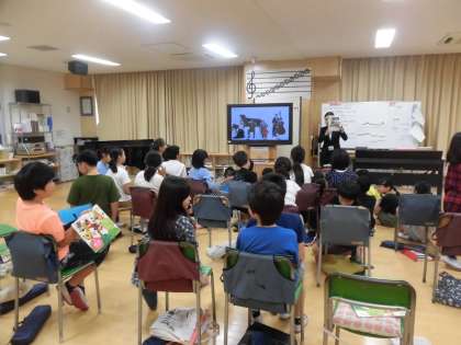 7月1日(月)の5時間目、5年3組は音楽の時間でした。モーツァルト作曲「アイネ クライネ ナハトムジーク第一楽章」の鑑賞をしました。本校では掃除時間の音楽として流れるので、子どもたちもよく知っている曲です。改めて演奏の映像を見たり、楽器の種類を学習したりして、曲のキャッチフレーズ作りにも挑戦しました。