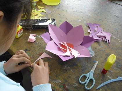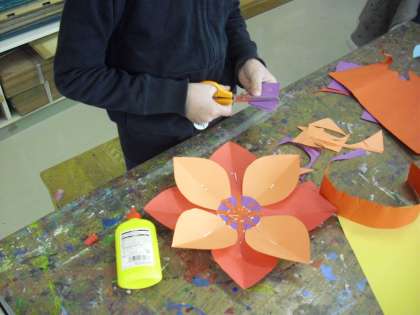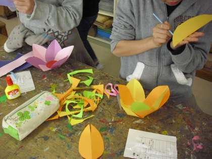 4年生の図工の授業の様子です。卒業式の装飾作りをしているところです。4年生は卒業式には参加しませんが、祝福の花飾りで6年生に「おめでとう」のメッセージを贈ります。すてきな花飾りができそうです。
