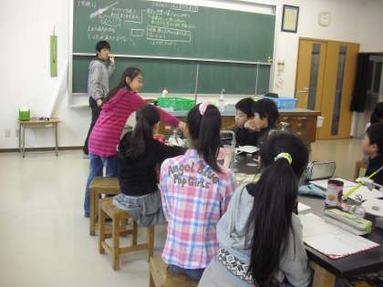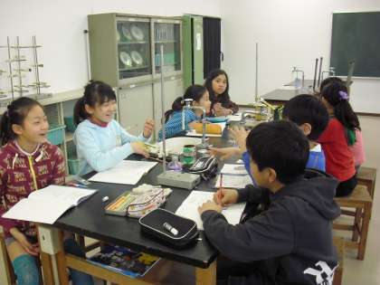 4年生の理科の授業の様子です。水のあたたまり方の実験を行い、どのように水はあたたまるのかを話し合っているところです。自分の予想を立て、実験を行い、確かめます。ある子は、お風呂の沸き方を例に出しながら自分の考え方を述べていました。