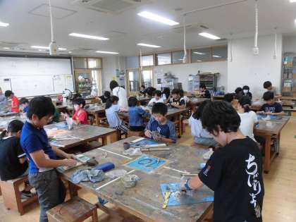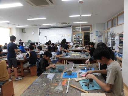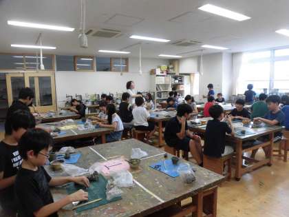 5日(金)の5・6時間目、6年3組は図画工作の時間でした。「マイマグカップ」と題して、焼き物用粘土で器をつくっていました。粘土を半分にして2個つくろうとしている人もいました。