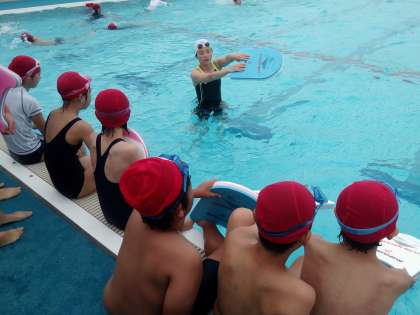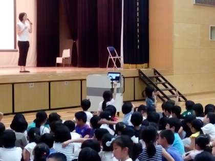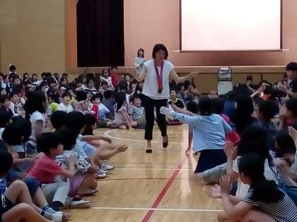 何と、あのアテネ・北京のオリンピックで連続銅メダルと、大活躍された女子水泳の中村 礼子さんが、本校を訪問してくださいました。まず2校時目は、体育館で全校児童を前に、「夢に向かって」というテーマでご講義いただきました。3・4校時目はプールに会場を移し、6年生を対象に実技指導をいただきました。ご専門は背泳ぎですが、クロールの息継ぎや、平泳ぎの足や手の動かし方など、子どもたちに合わせて丁寧に教えてくださいました。また、美しくゆったりとしたフォームで試泳をしていただき、一同、メダリストの泳ぎを目に焼き付けることができました。