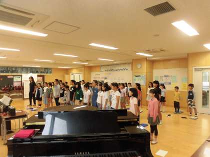 8日(月)の午前7時30分から合唱団の朝練習がありました。「青い竜」の練習をしています。楽譜を見て、フォルテやピアノなどの強弱を確認しながら歌いました。録音をして地声になっているところも聞き合いました。