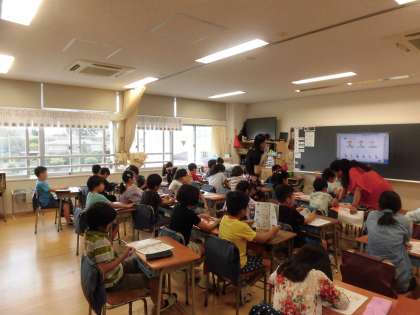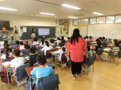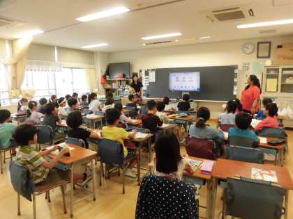 9日(火)の3時間目、3年1組は英語の時間でした。英語専科の先生とALTの先生とで授業をしています。子どもたちは「好きな色は?」の質問に答えていました。