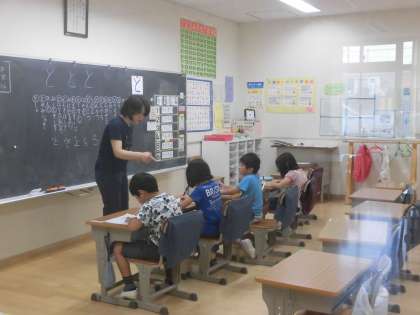 9日(火)の3時間目、ひかり学級は国語の時間でした。4クラスに分かれて、ひらがなの練習をしたり、説明文を読んだりしていました。