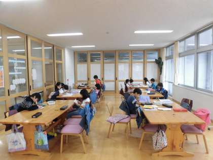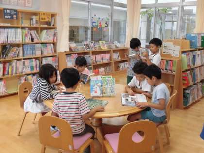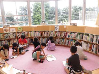 11日(木)の5時間目、2年1組は図書の時間でした。先週借りた本を返してから、借りる本を選び、その後は各自のお気に入りの場所で静かに読書をしていました。