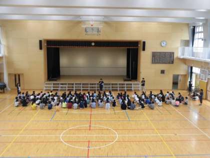 13日(土)の3時間目、6年生は体育館で日光林間学園の練習を行いました。最初に、持ち物についての質問を受け付け、先生が答えました。その後、ラジオ体操やキャンドルファイヤーの練習をしました。6年生はダンスバトルの朝練習も頑張っています。