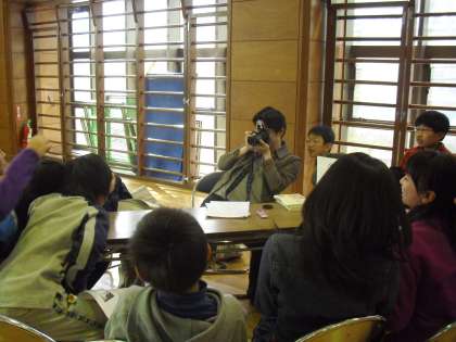 一人約20分間の話をします。その後は子どもたちの質問です。3展開して子どもたちは、興味・関心のある職業から3名の話を聞きました。写真は上から、ミュージカル監督、ライター、理容師の方です。