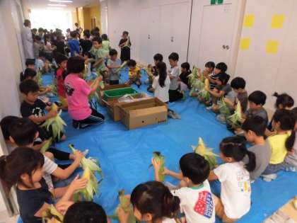 1年生 トウモロコシの皮むき (7/17)
