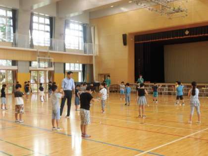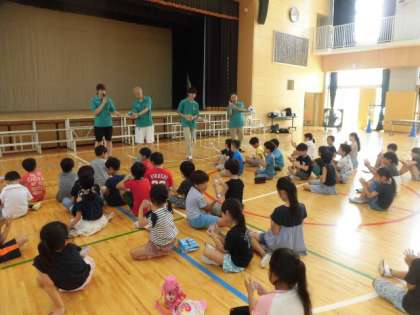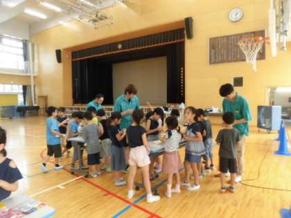 29日(月)の午後からは体育館で「ヨーヨーしようYO〜」が2部形式で開催されました。前半は、2・3・4年生対象です。透明なヨーヨーにビースなどで飾りをしてから、講師による指導が始まりました。手の向きやこつなどを丁寧に教えていただきました。