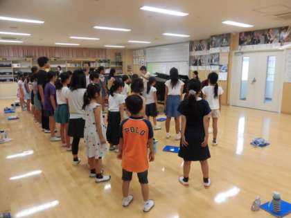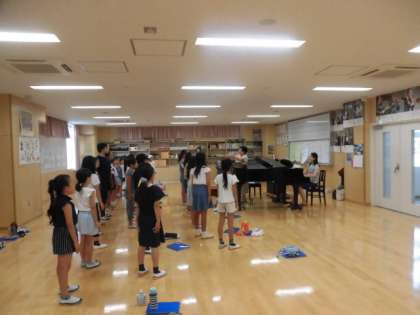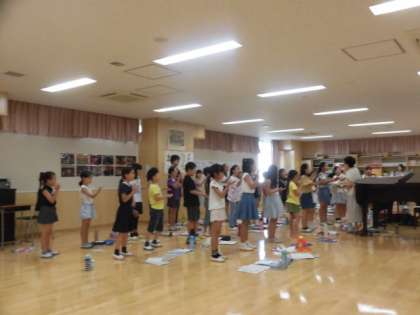 合唱団の子どもたちは、夏休みに入ってから毎日練習を重ねてきました。土曜日も日曜日もです。そして、29日(月)がコンクール前最後の練習となりました。給食室改修工事の音の影響から、中学校の音楽室をお借りして練習をしました。入場シーンから始まり、本番同様、課題曲、自由曲の順で歌いました。録音した自分たちの歌声を聞きながら、改善できるところを出し合っていました。