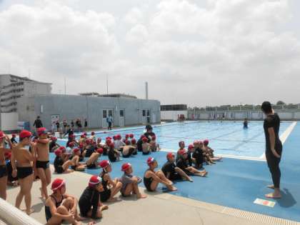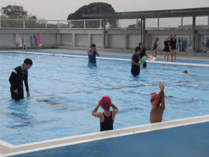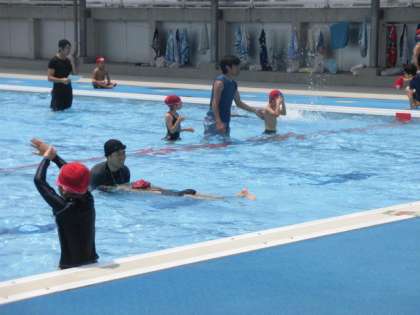 30日(水)、第3回目の夏季水泳教室は2年生でした。77名が参加しました。水慣れをしてから、受けたい級ごとに分かれて検定を行いました。
