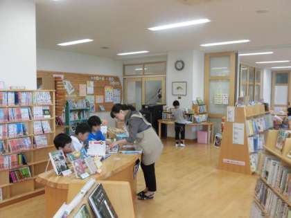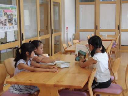 夏季水泳教室期間中は、図書室を開放しています。時間は午前9時から正午までです。これまでのところ、平均して30名の子どもたちが利用しています。その半数が学童の子どもたちです。写真は、30日(火)の様子です。