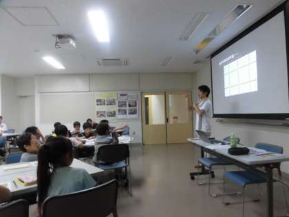 31日(水)午後1時から会議室においてサマーワークショップ「ルークの冒険 1年生編」が開催されました。講師は本校で取り組んでいる「脱ワンワード」をご指導くださっている三谷先生です。1年生は身の回りの円柱探しなど、感動の声をあげながら取り組んでいました。
