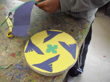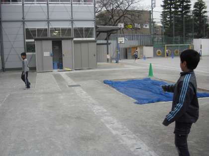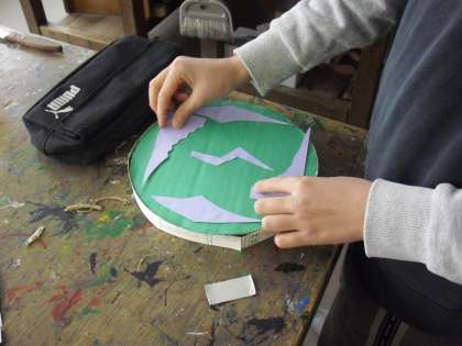 4年生の図工の授業の様子です。手作りのフライングディスクを作っているところです。早くできた子どもたちは、校庭で試し投げをしていました。なかなかよく飛んでいたので子どもたちも喜んでいました。