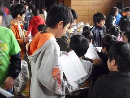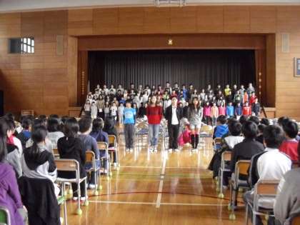 「次の6年生へ託す」という意味を込めて、卒業式に向けての初の5・6年生合同練習の前に6年生から5年生に「名言」が贈られました。6年生のこの一年間の経験が生んだ名言です。名言にその意味を添えて、直接5年生一人ひとりに手渡しました。