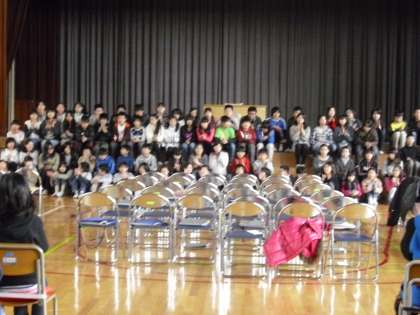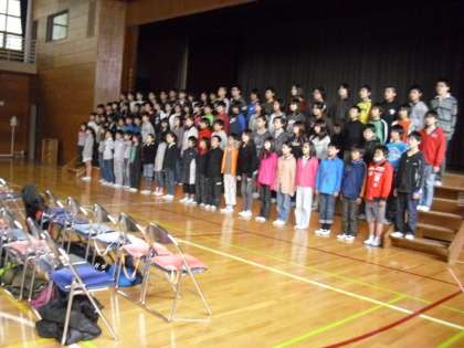 5・6年生による卒業式合同練習の様子です。合同練習は今日が第1回でした。6年生は5年生に対して「これからの練習について、よろしくお願いします。」とあいさつをしました。5年生の気持ちが引き締まる言葉でした。バトンゾーンに入った5年生。しっかりとバトンを受け取るために在校生代表としてがんばります。