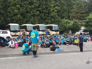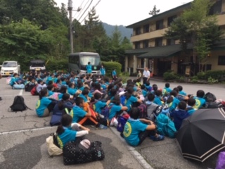 宿舎に到着しました。予定より少し早めに進んでいます。開園式で宿舎の方にしっかりと挨拶ができました。