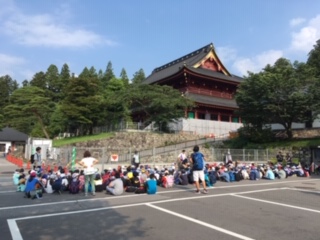 二社一寺見学の始まり、輪王寺です。団体見学の一番乗り。これからクラス毎にガイドさんの説明を聞きながら見学します。