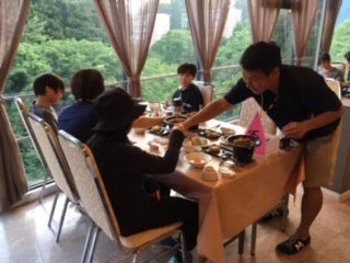 夕食です。みんな会話を弾ませながら楽しくいただいています。