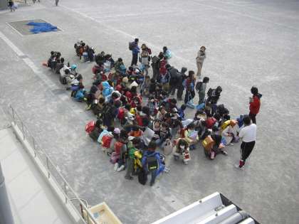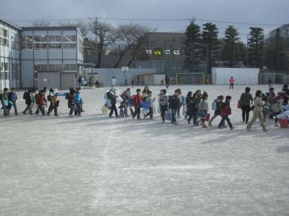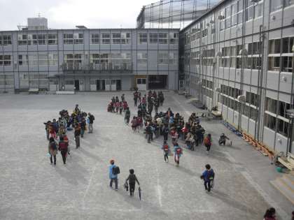 下校の様子です。今日も授業終了後は完全下校を実施しました。授業終了後に学年・学級ごとに整列し、安全を確認して下校しています。