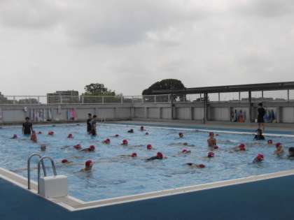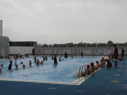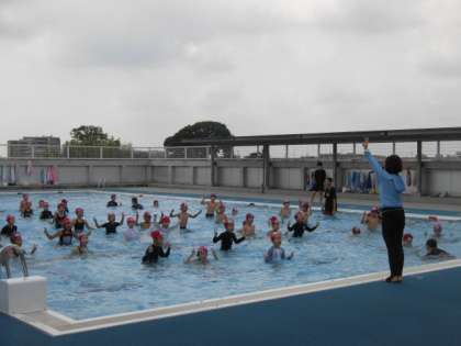 26日(月)、第3回目の水泳教室は2年生でした。開始が待ち遠しくて、受付の前には子どもたちが列を作っていました。準備運動、シャワーのあと、水慣れをしましたが、少しでも長く潜っていられるように練習をしました。