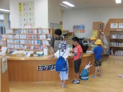 26日(月)、夏季水泳教室の再開に伴い、図書室の開放も始まりました。水泳の前後に利用しています。学童の子どもたちも時間を決めて来室しています。