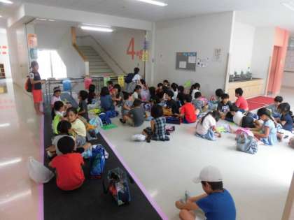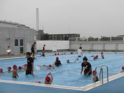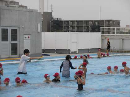 28日(水)の水泳教室は、少しずつ空模様が怪しくなり、第3回目の2年生の部で終了としました。中学年の子どもたちの検定は、2学期に実施いたします。2年生は、時折、雨粒が落ちてくる中でも元気に過ごしていました。