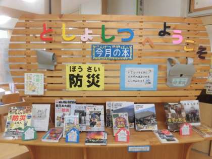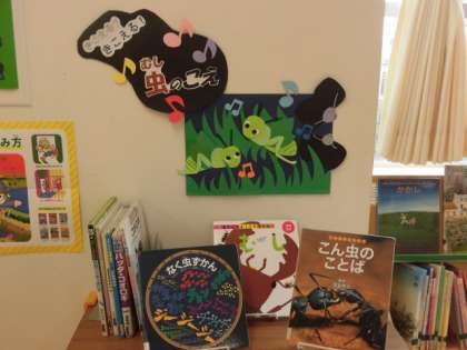 9月に入ったので、図書室入口の掲示物が変わりました。防災の日にちなんだ図書の紹介がされています。また、図書室内には新しい本の紹介や虫が登場する本の紹介コーナーも設けられています。