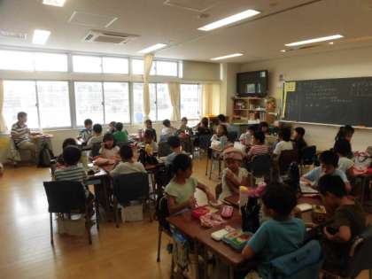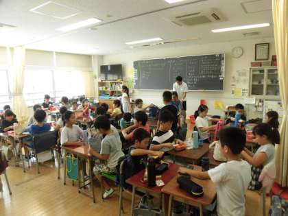 給食室改修工事に伴い、3日(火)からお弁当期間が始まりました。保護者の皆様には10月末日まで40回のお弁当作りで大変お世話になります。どうぞよろしくお願いいたします。子どもたちは「いただきます」と元気に挨拶をしてから、「おいしい」と言ってお弁当をいただきました。写真は1年生、2年生、3年生の様子です。