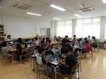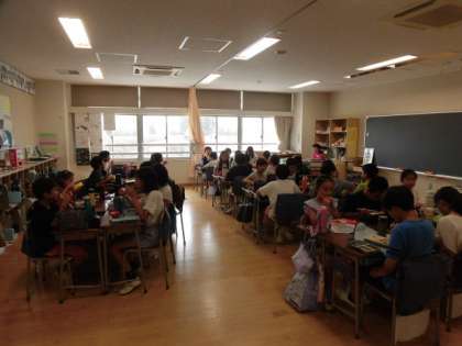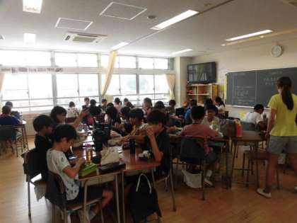 お弁当は給食と違って、すぐに食べることができます。そのため、食べ終わりも早まりますが、午後1時までは1学期同様教室で過ごします。写真は、ひかり学級、4年生、5年生の様子です。
