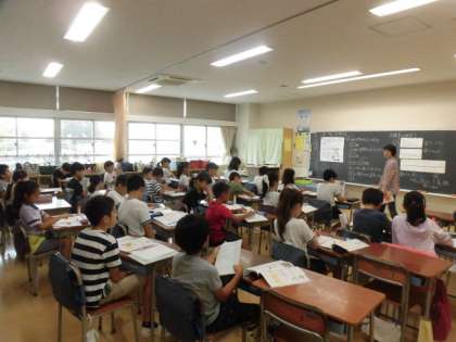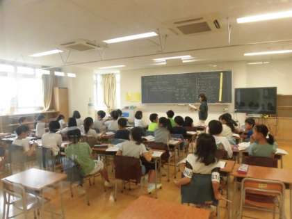 4日(水)の1時間目、4年1組、2組は算数の時間でした。「小数」の学習をしています。小数第二位まで用いた長さの表し方に取り組んでいました。