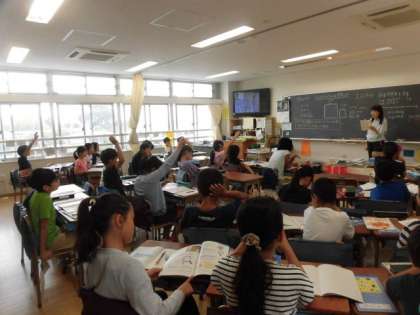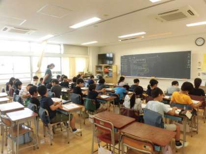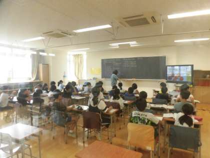 5日(木)の2時間目、4年3組、4組、5組は算数の時間でした。「小数」の学習で、今回は0.01より小さい数について考えました。