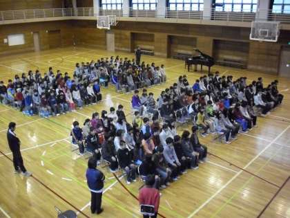 5・6年生による卒業式の練習の様子です。卒業生・在校生の言葉、歌等を通して行いました。今日の冷たい雨で、体育館の気温も低かったですが、子どもたちは張りのある声で呼びかけの練習をしました。