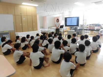 6日(金)は2年生が計測をしました。最初に養護教諭から「おへそのはたらき」のお話がありました。お母さんとおなかにいる赤ちゃんをつなぐ「へそのお」の役目を知り、子どもたちは驚いていました。その後、身長、体重の順で測定を行いました。写真は3時間目の2組の様子です。
