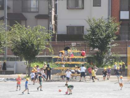 6日(金)の昼休み、子どもたちは元気に外遊びをしています。クラス単位で遊んだり、先生と鬼ごっこをしたりして楽しく過ごしていました。休み時間終わりの音楽が流れると走って戻ってくる姿が素晴らしいです。