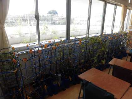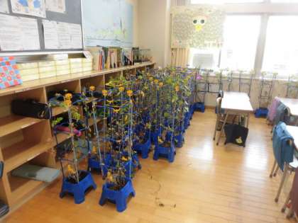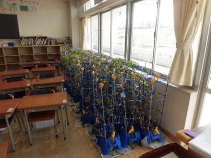 台風15号が8日から9日にかけて接近する恐れがあるという予報を受けて、物が倒れたり、飛ばされないように点検をしました。1年生はアサガオの鉢を教室に入れて下校しました。