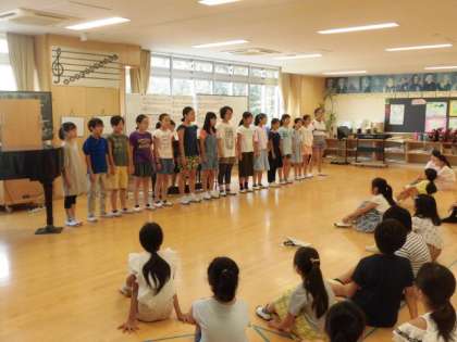 7日(土)の午前8時30分から、合唱団の練習がありました。授業日ではありませんが、午前10時まで「森のひびき」の練習をしました。学年ごとに歌ったり、一人ずつ歌ったりしながら音程を正しくとる練習をしていました。