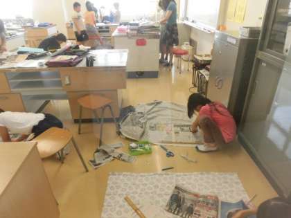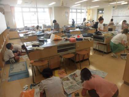 9日(月)の3・4時間目、6年1組は家庭科の時間でした。「生活に役立つ オリジナルグッズ」と題して、ウォールポケットや手提げなどの型紙を布に当てて印を付けていました。縫いしろ分を頭に入れながら、作業を進めていました。