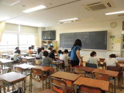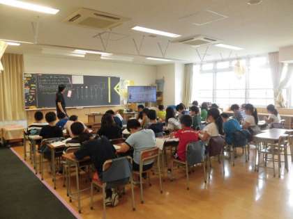 9日(月)の3・4時間目、5年3組と4組は算数の時間でした。単元名「倍数と約数」に取り組んでいました。