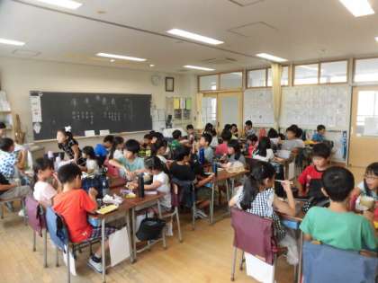 9日(月)は、台風15号の影響により3時間目からの授業でした。そのため、子どもたちは、「もうお弁当だ!はやーい。」と言いながら喜んでいました。写真は上から、2年生、3年生、ひかり学級の様子です。