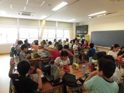お弁当持参期間は40日あります。9日(月)で5日目となり、全体の8分の1が経過したことになります。保護者の皆様には感謝の気持ちの気持ちでいっぱいです。子どもたちは毎日喜んでいただいています。写真は上から、4年生、5年生、放送委員によるお昼の放送の様子です。