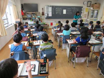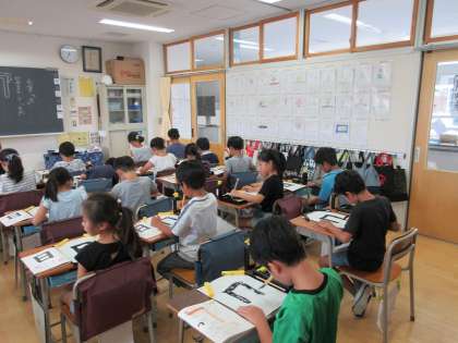 11日(水)の3・4時間目、3年1組は習字の時間でした。「おれ」に気を付けながら「日」と書きました。久しぶりの習字でしたが、準備や片付けの仕方をきちんと覚えていました。