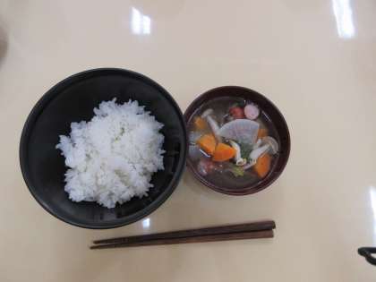 11日(水)の3・4時間目、ひかり学級は生活単元の学習で「調理」をしました。今回は、「ふりかけご飯」と「はるさめスープ」に挑戦しました。特にはるさめスープはにんじん、だいこん、ちんげんさいなどの野菜がたっぷり入っていました。ゆでる前と後とで春雨の柔らかさが変わることにも気付きました。